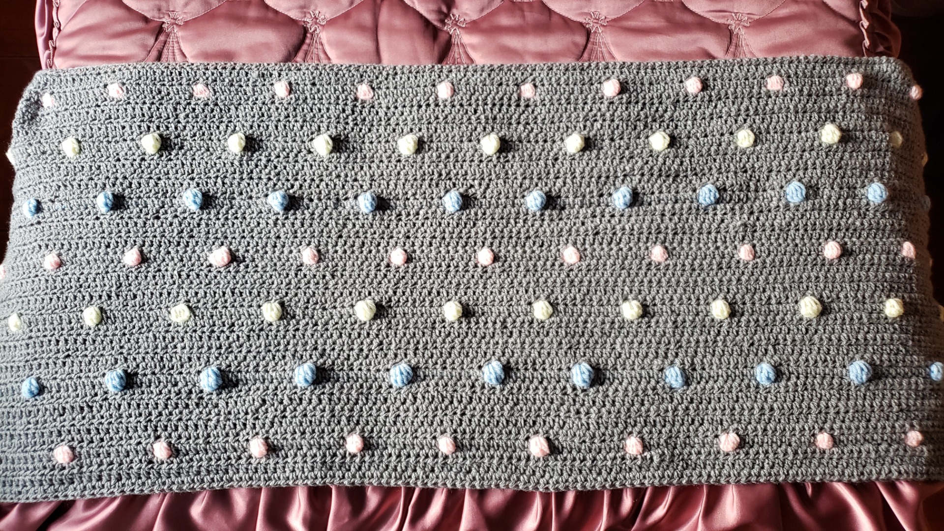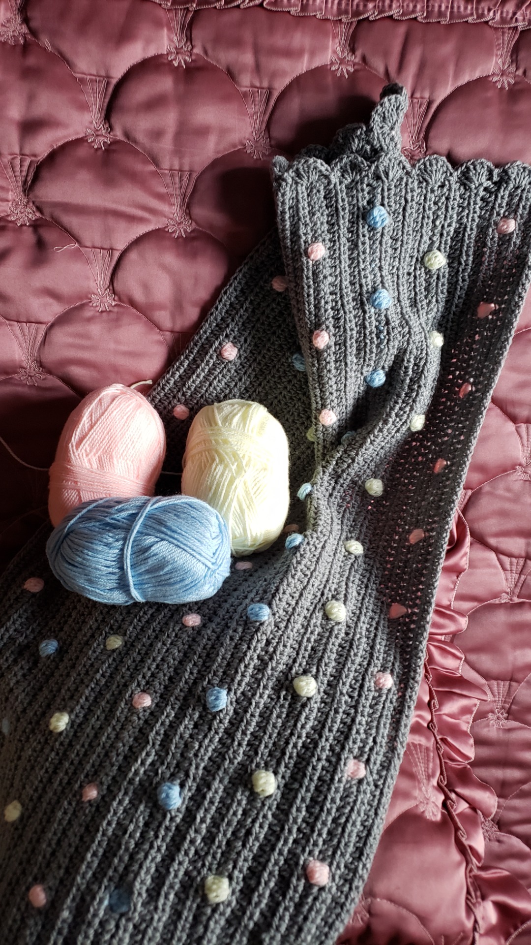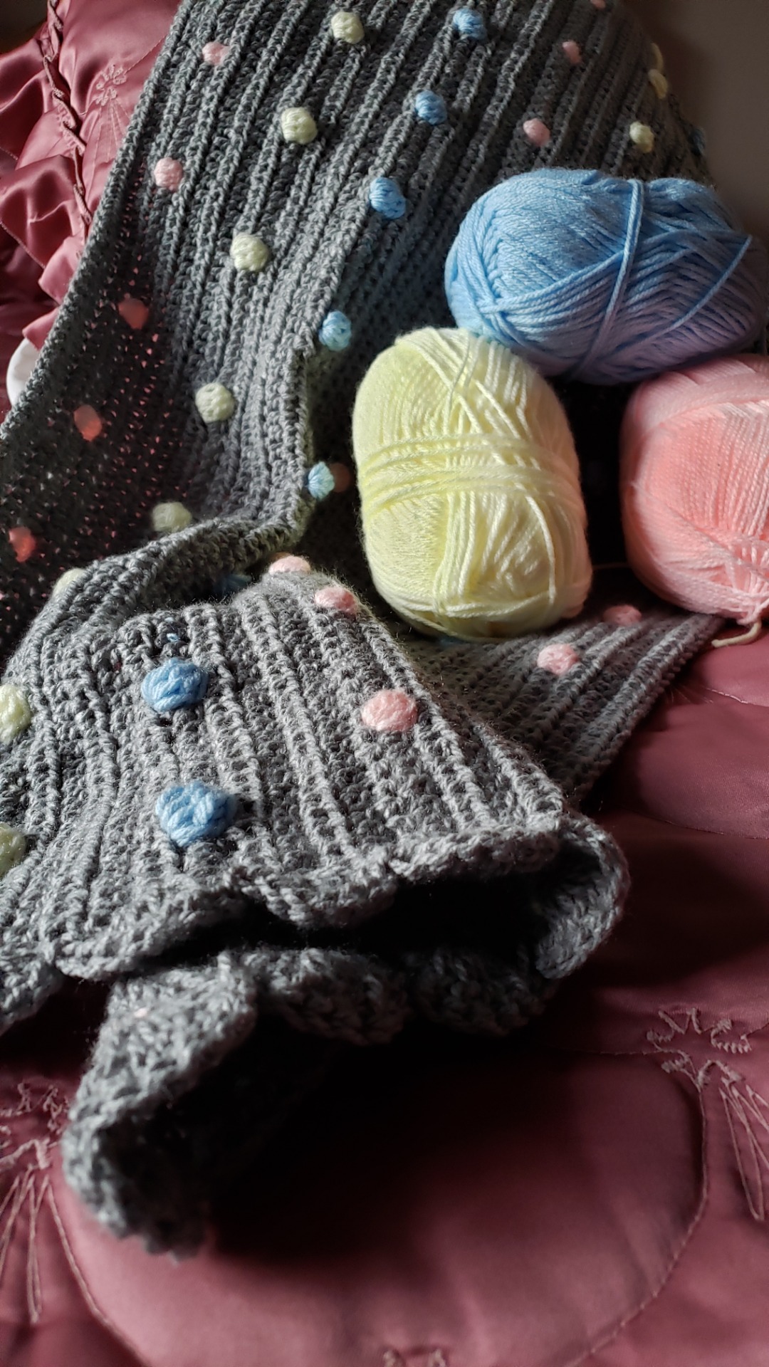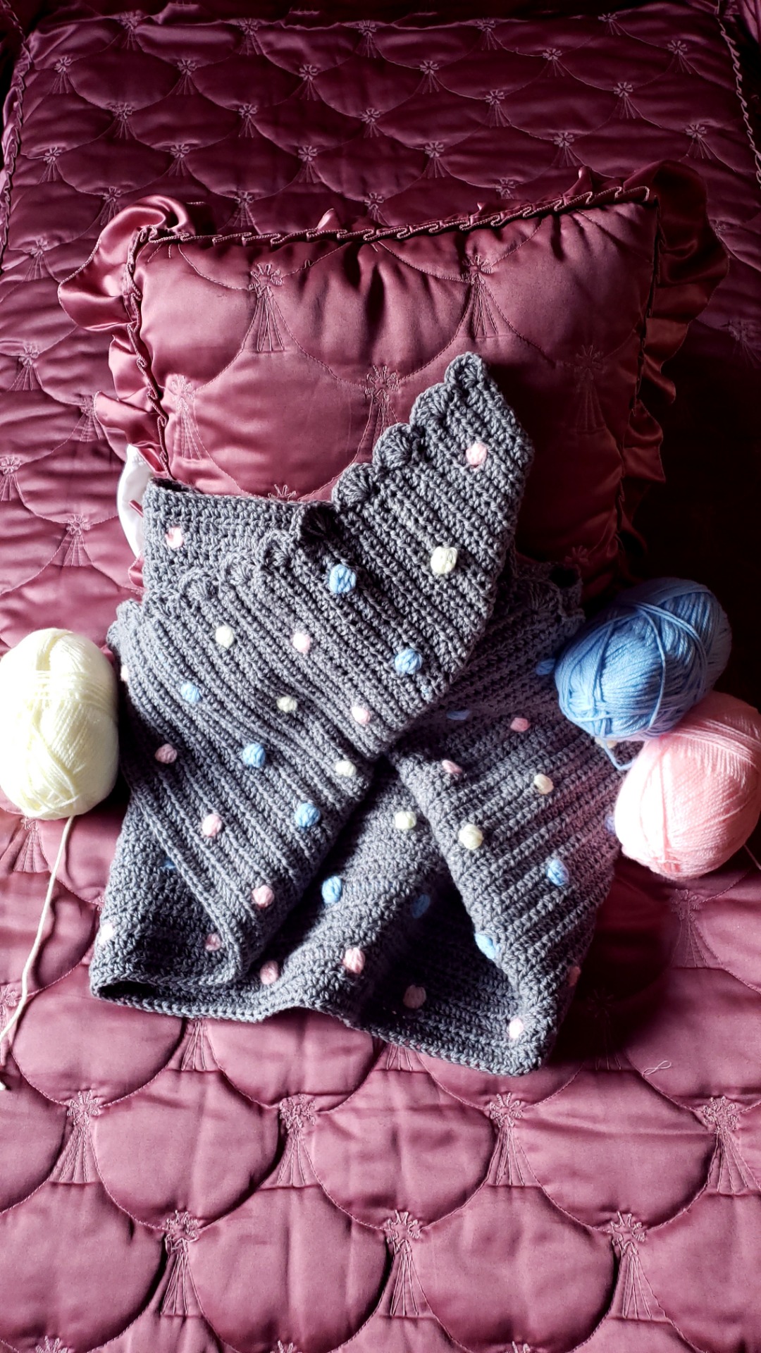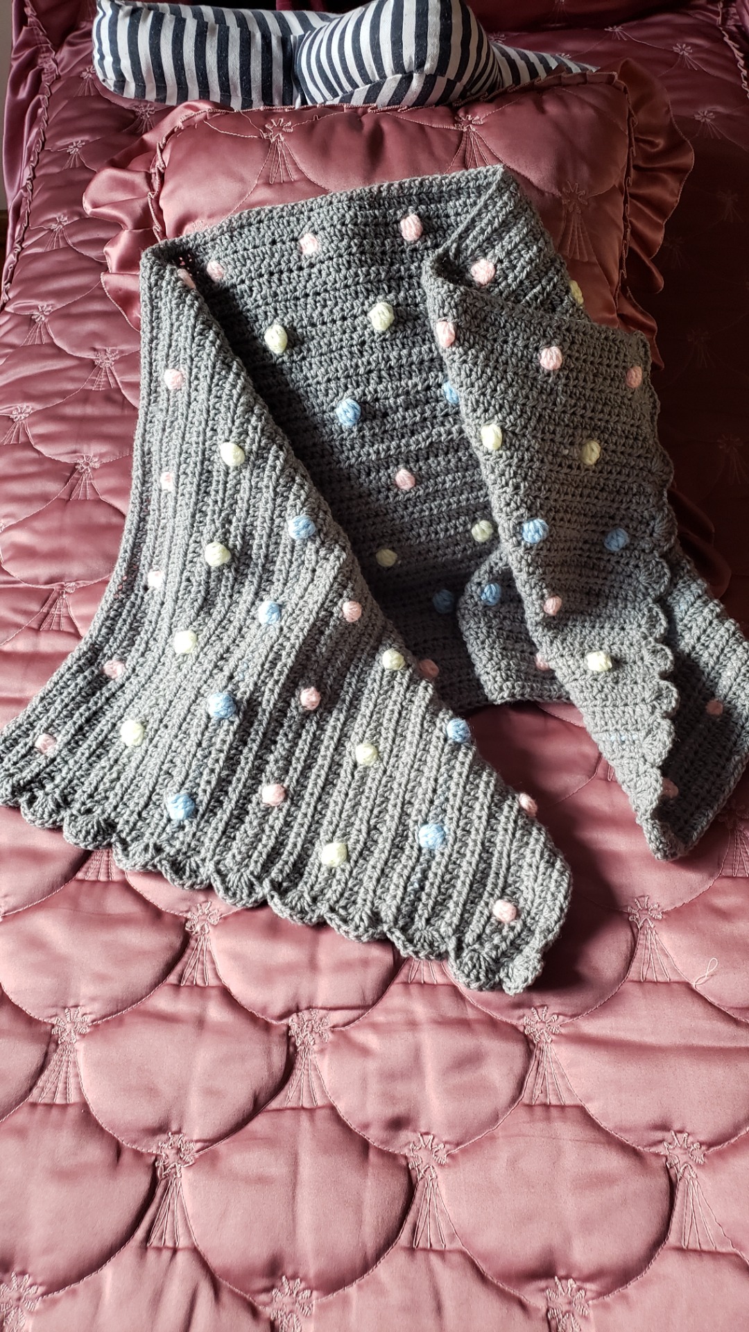 Hecho con lana de distintos colores para crear un efecto de bolitas, con tipicos colores de helado. Pueden variar los colores y el tamaño a eleccion del cliente, ideal para los pies de la cama.